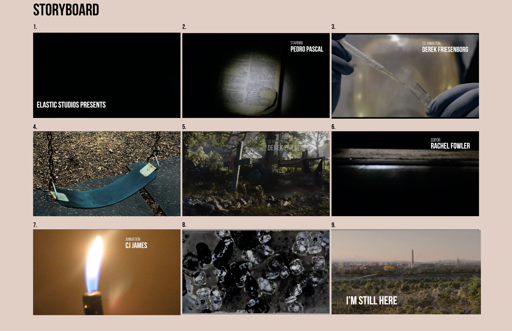 For this project, I combined real-world photography and videography with post-apocalyptic video game footage to build a cohesive visual narrative. I developed a design system that aligned with the project’s emotional tone, blending natural environments with digital elements to support the title sequence’s atmosphere and storytelling.